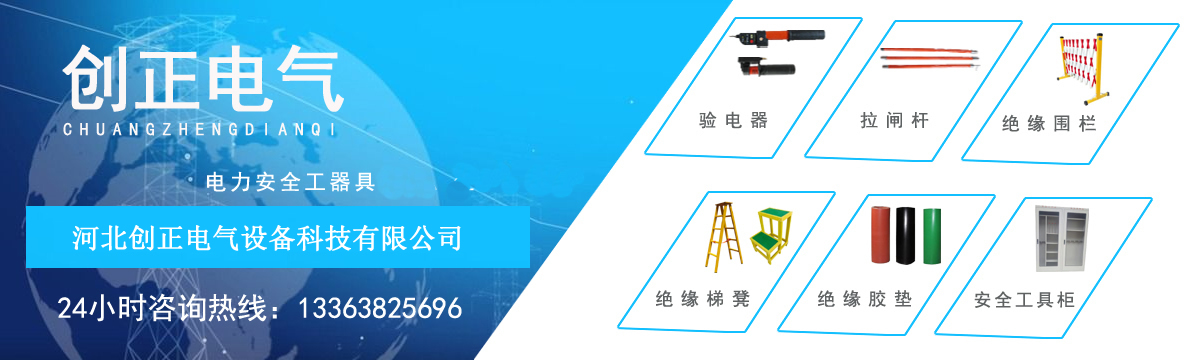 河北創正電氣設備科技有限公司主要經營產品包括:高壓驗電器、高壓接地線、高壓拉閘桿、絕緣橡膠墊、絕緣伸縮圍欄、絕緣梯、安全工具柜、絕緣凳、擋鼠板、安全警示帶、絕緣臺、安全帶、腳扣、安全帽、標識牌、絕緣手套、絕緣靴等電力安全工器具。公司以“服務電力系統,努力永無止境”為目標,以“人才就是生產力”為戰略,以經驗為依托,以理念為指導,以員工為基礎,以市場為支撐,貫徹“以顧客需求為上”的經營理念,以合格的質量,合理的價位,適應市場的需求。
